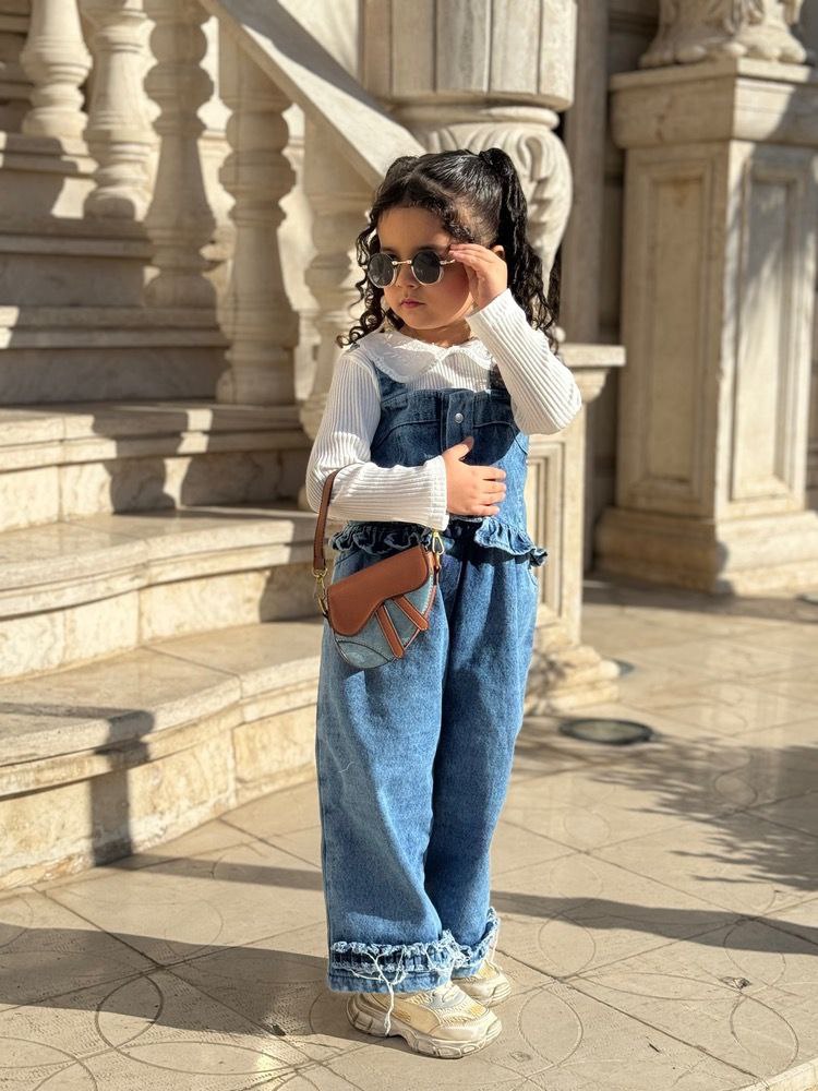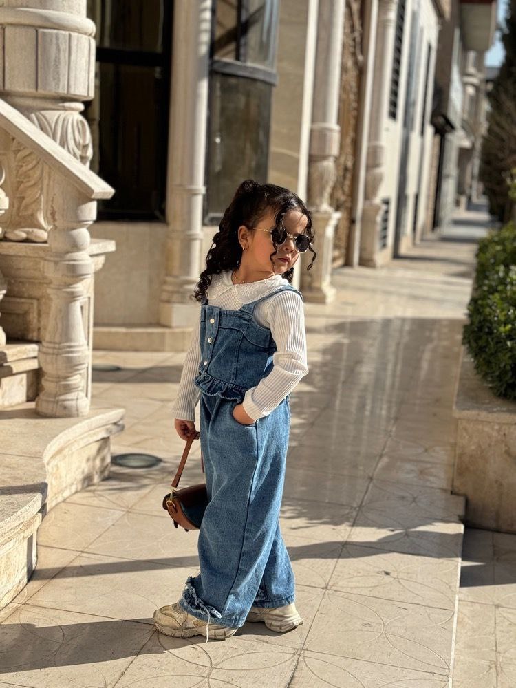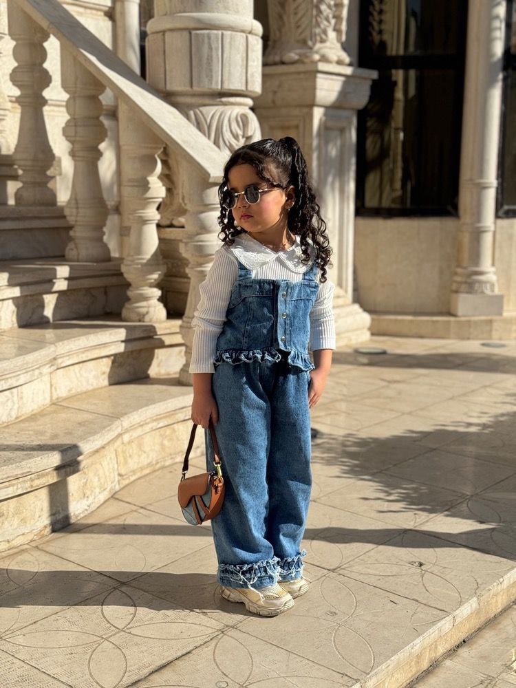 سه تیکه بلوز و جلیقه شلوار ، جنس جین سنگشور شده گرم بالا ، بلوز فانریپ، رده سنی دو تا هشت سال، ارسال دو اسفند