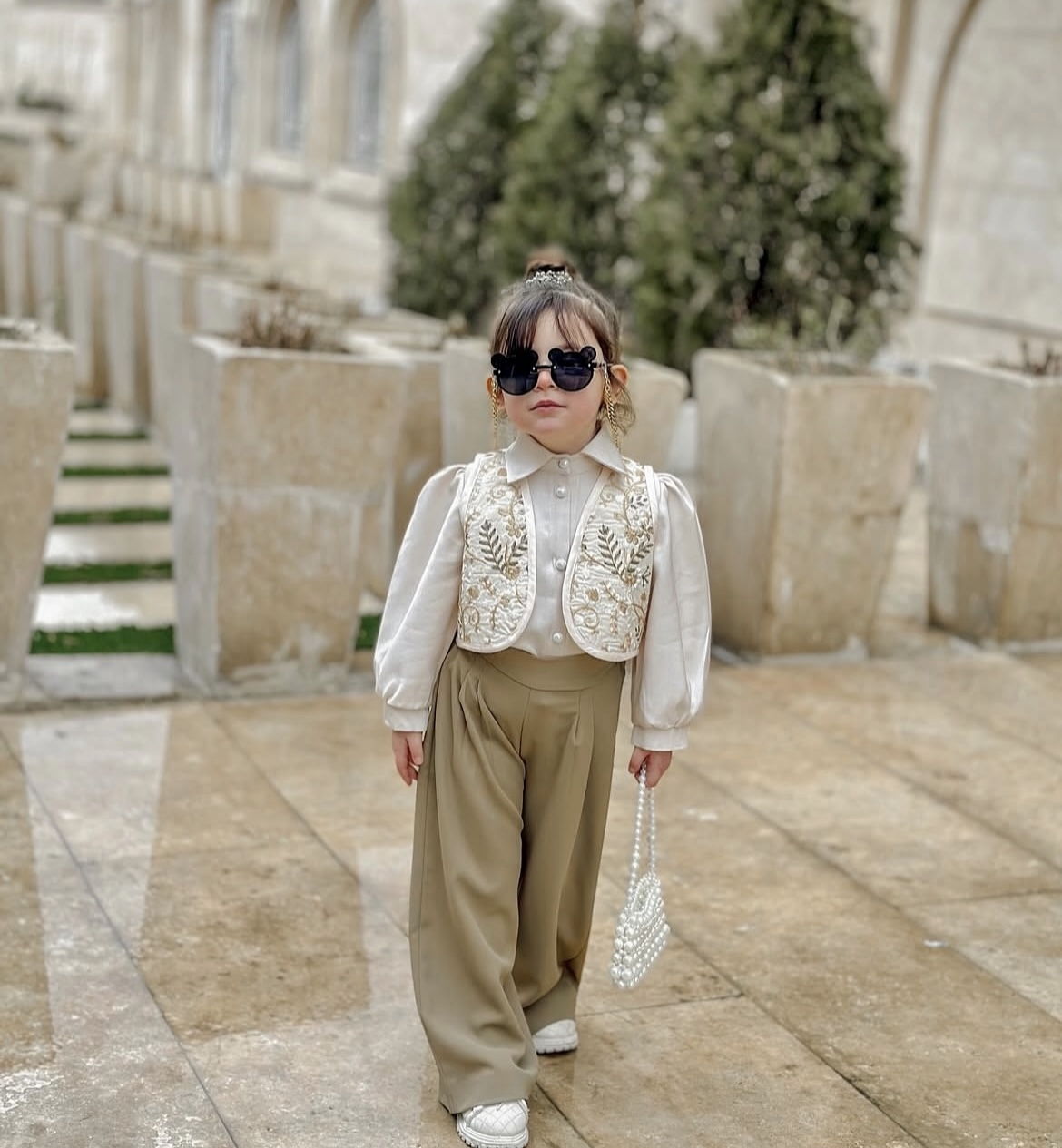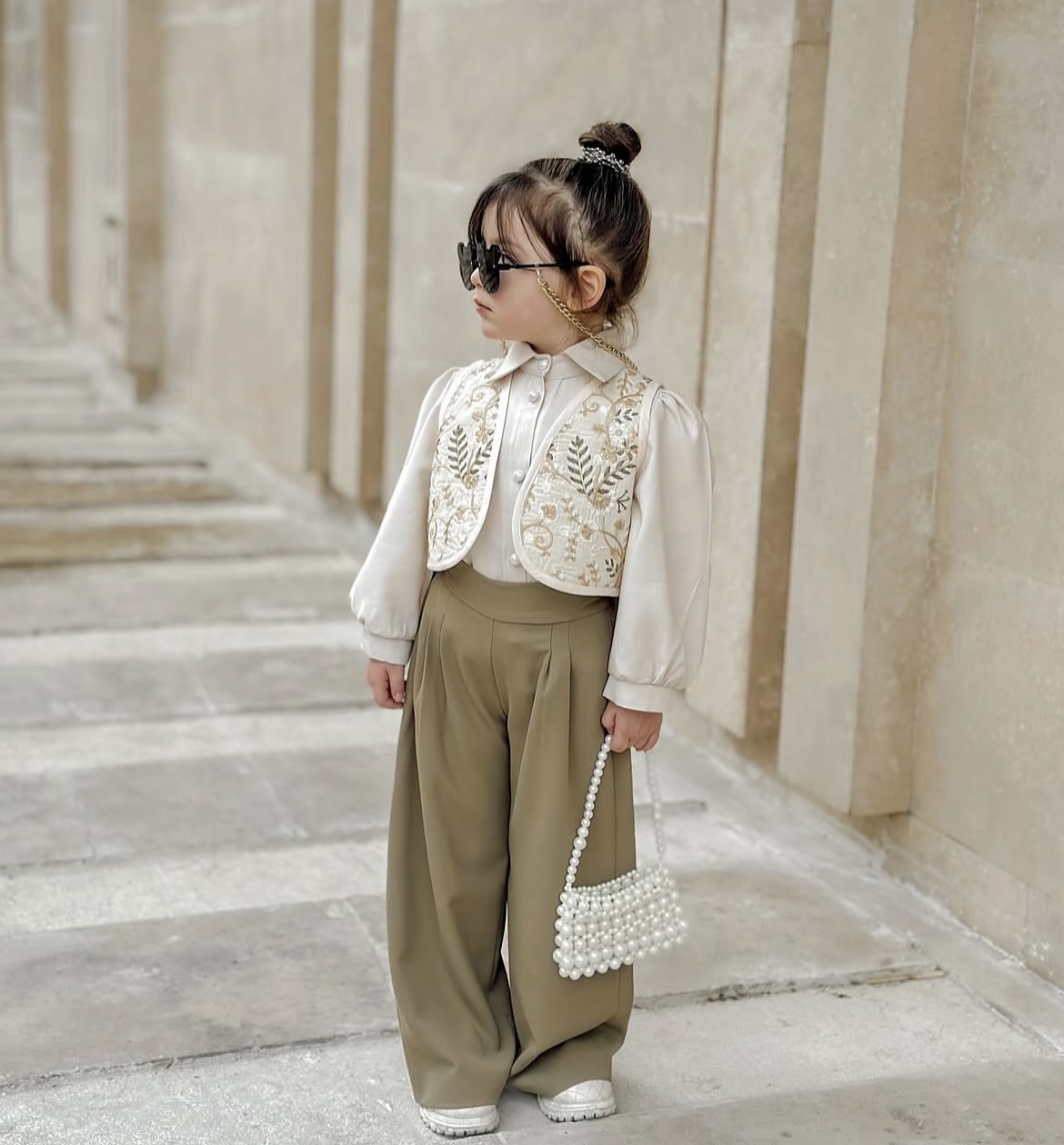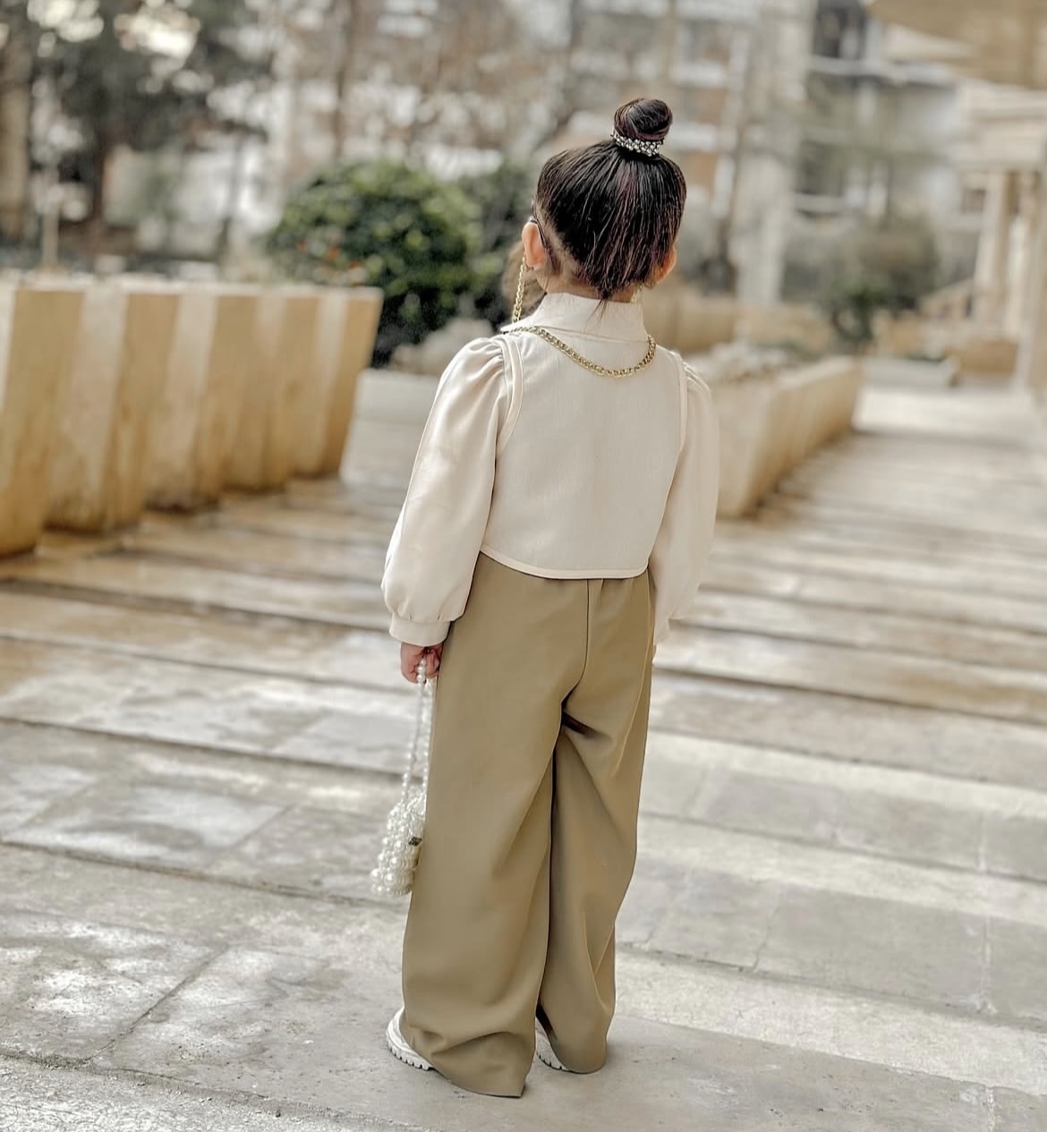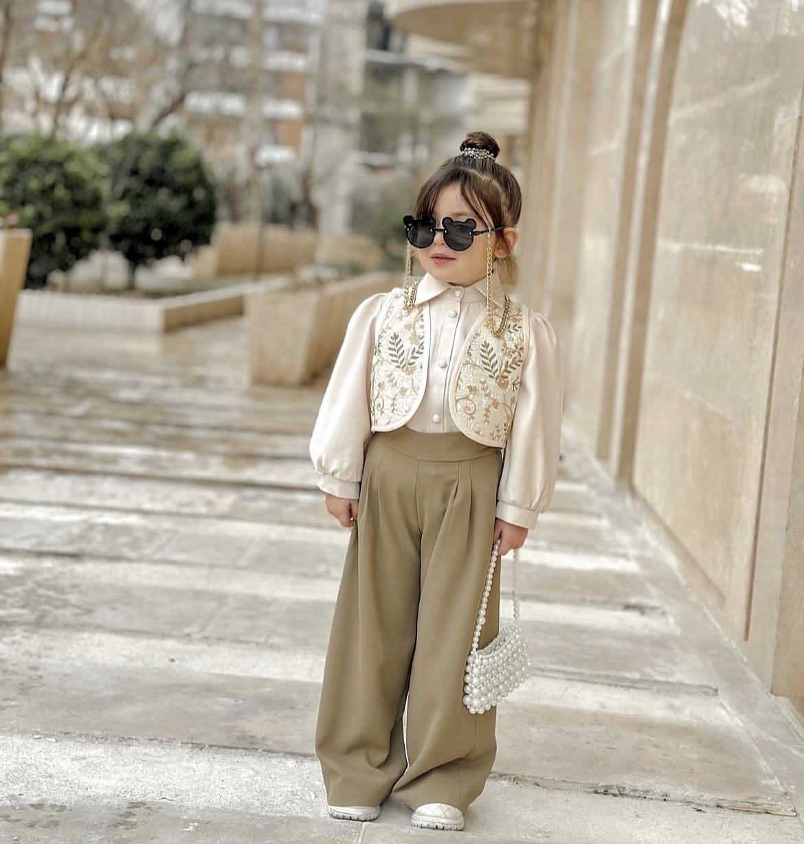 # سه تیکه شومیز و شلوار مازراتی و وست ✅سایز بندی ۲ تا ۸ سال ✅شومیز و شلوار مازراتی وست لنین سوزن دوزی ✅جلوی شومیز دکمه خور شلوار جلو کمر و پشت کش،به جز سایز ۳۵ که ارسال فوریه هست باقی سایزها ارسال هفته دوم آبان