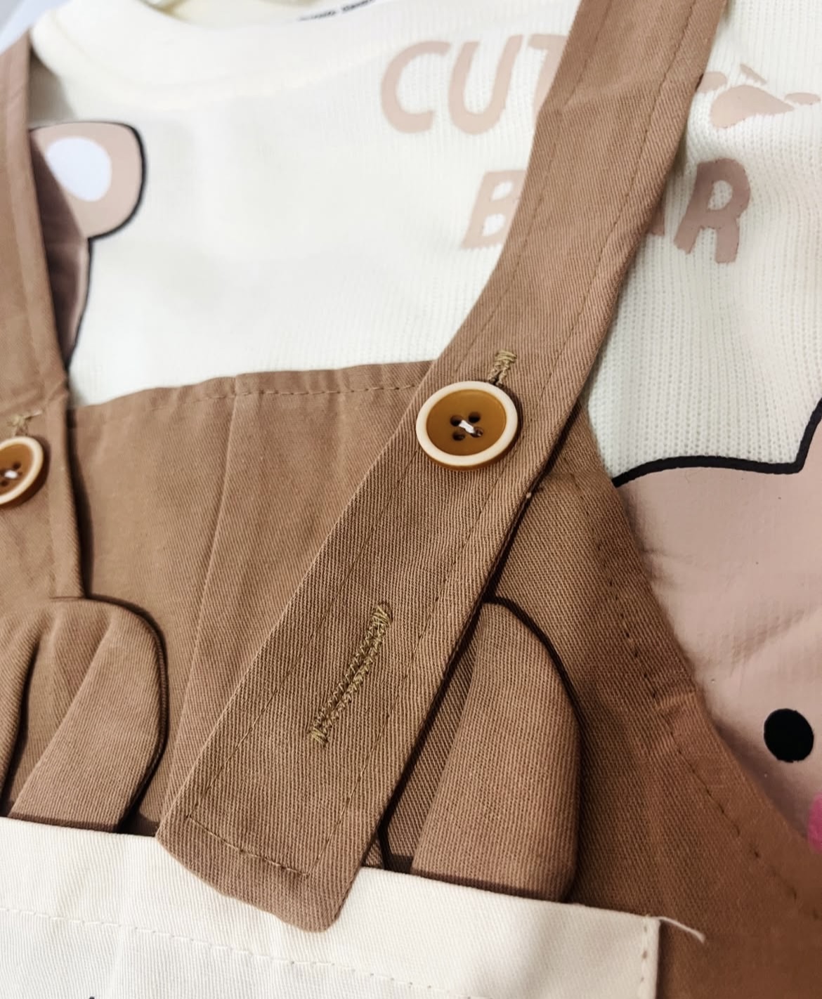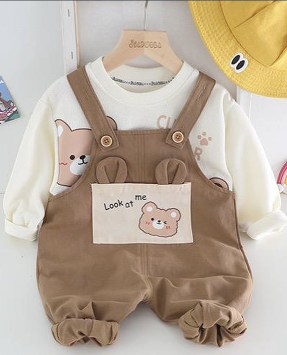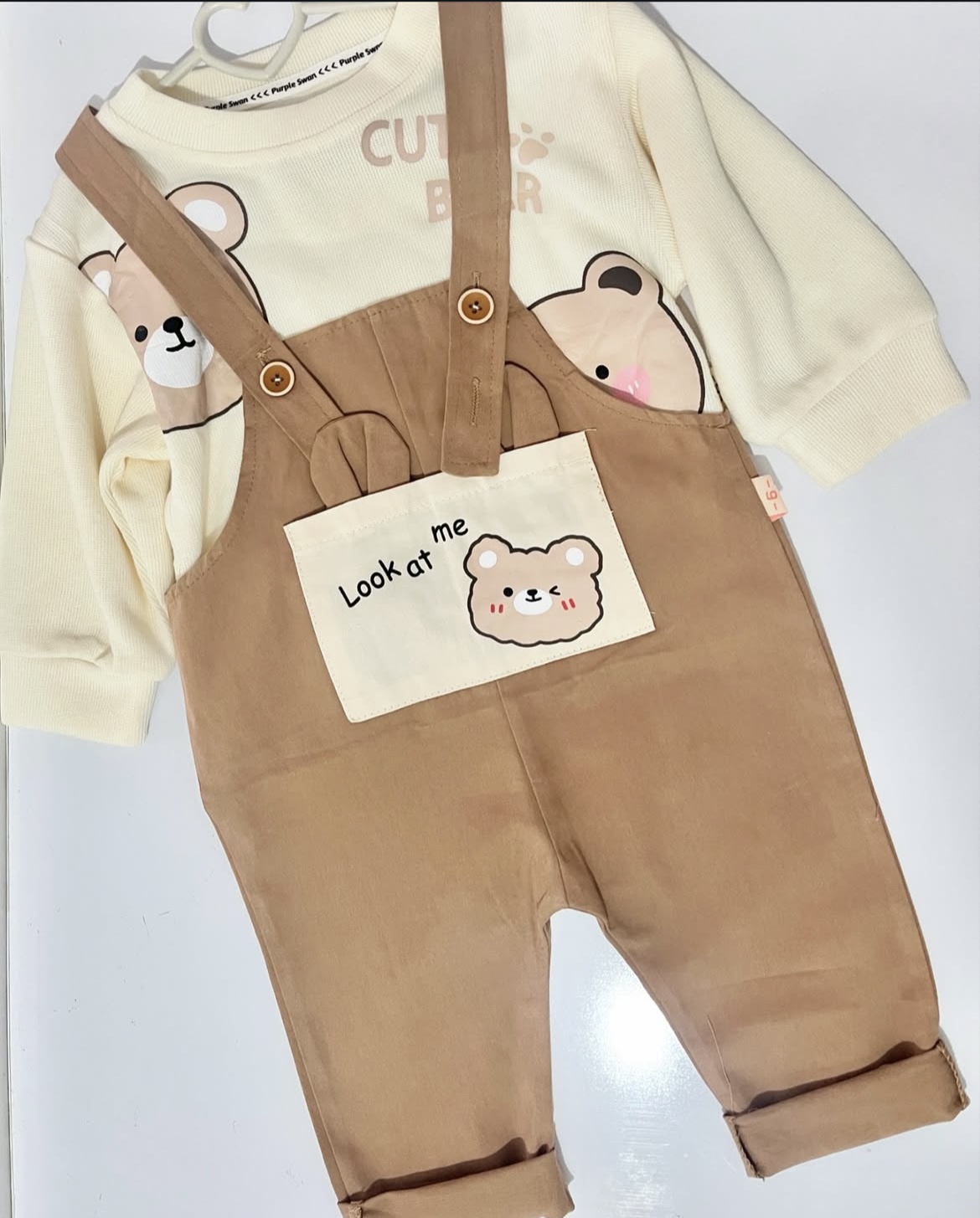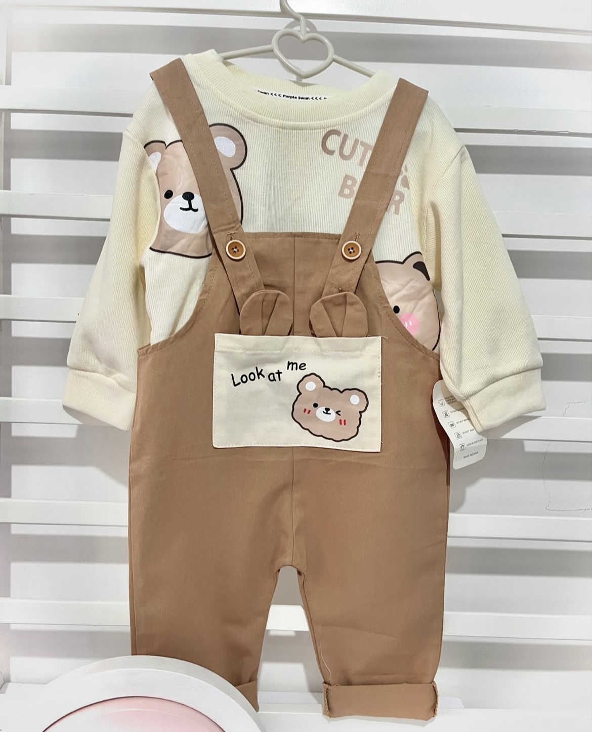 بیلر و بلوز بافت ریز تو دل بروش 🌝اصلا انقدر ناز و با کیفیت و زیباس که نگم برات 🌺جنس بیلر کتان هستش و جنس بلوز بافت خیلی نرم و لطیف 🧶با اون جیب خوشگل روی بیلر 🐻مناسب هم دختر هم پسر 👧🏼👦🏼 📏جای دکمه برای تنظیم قد بیلر داره
