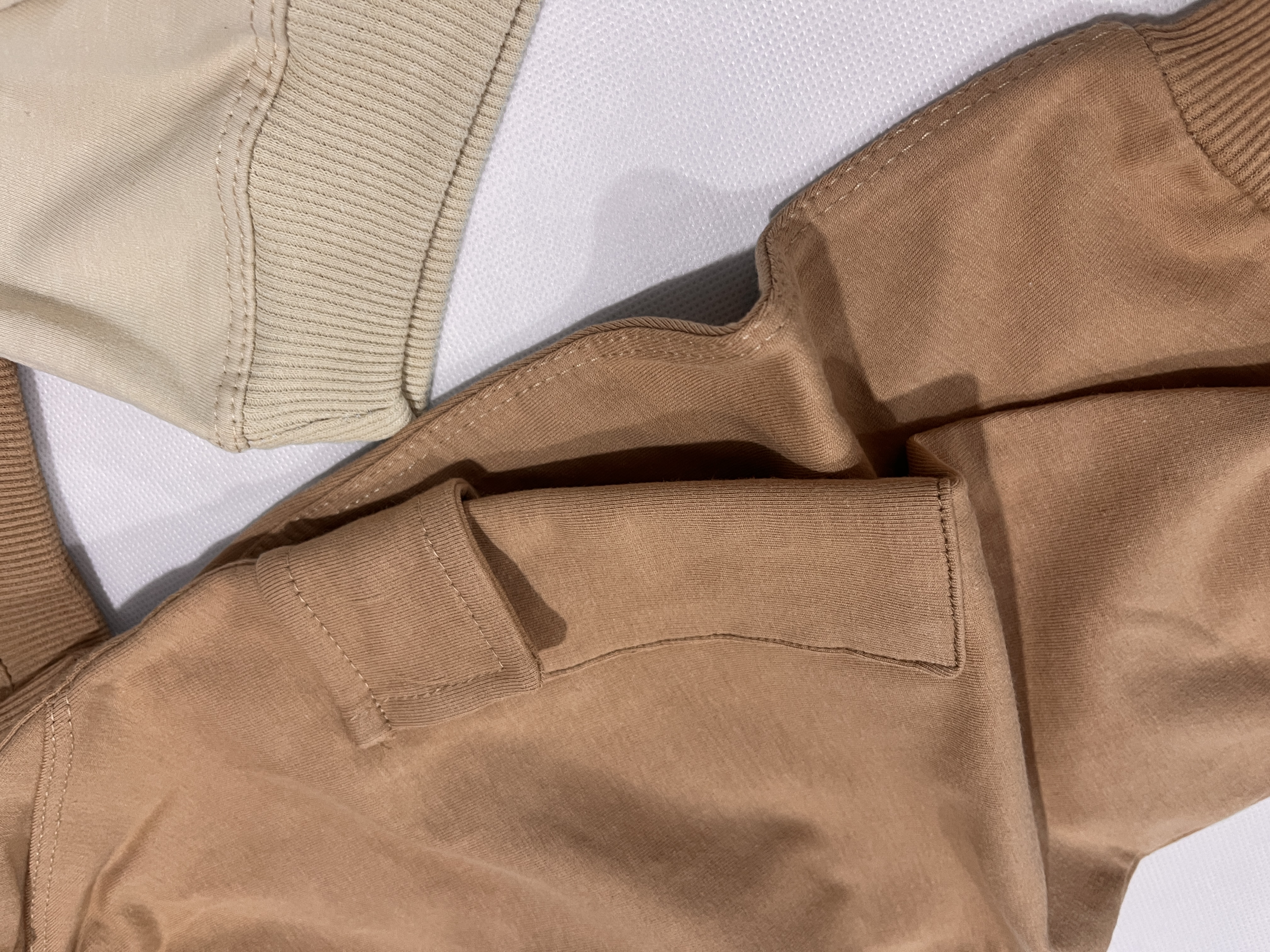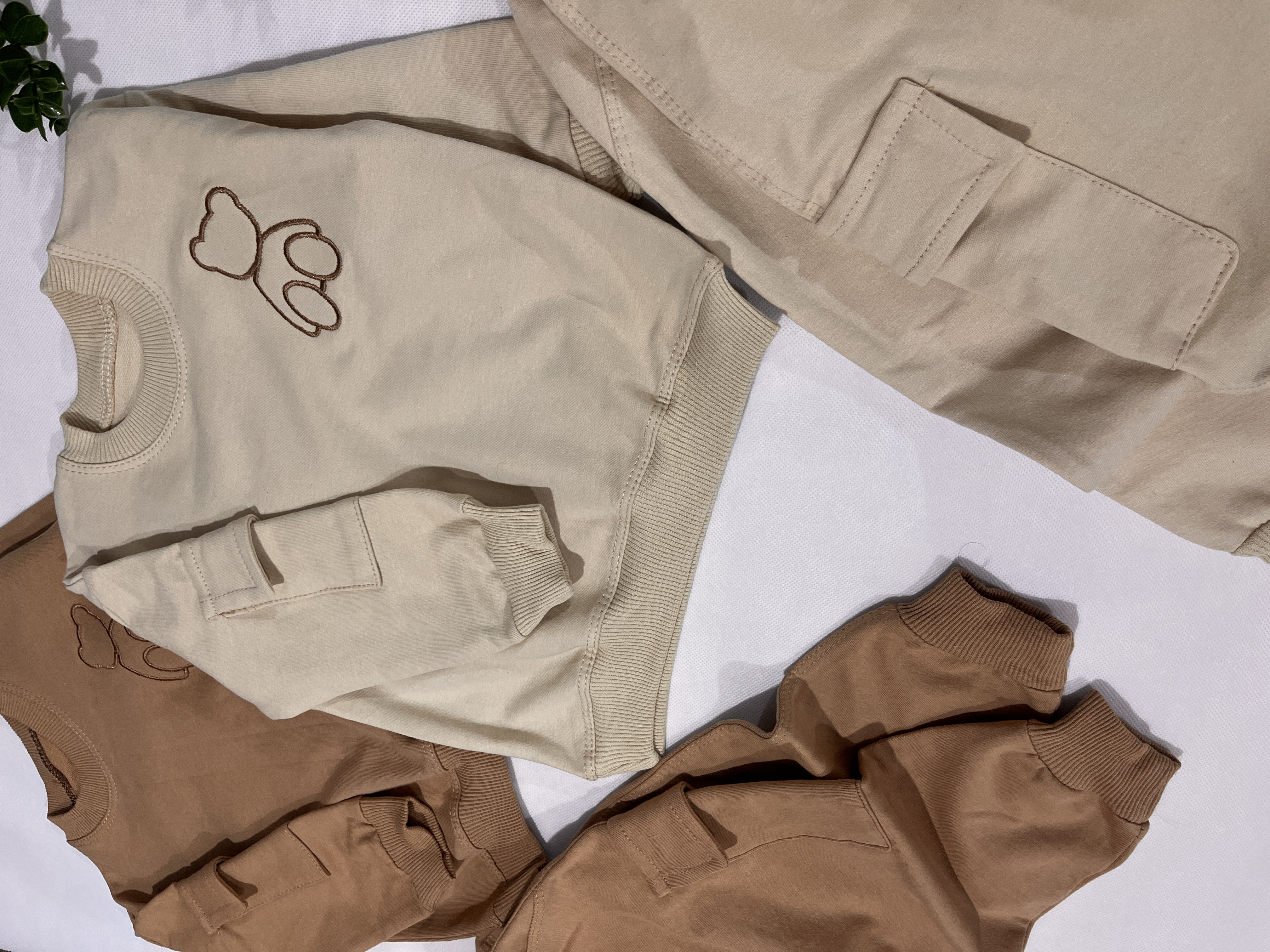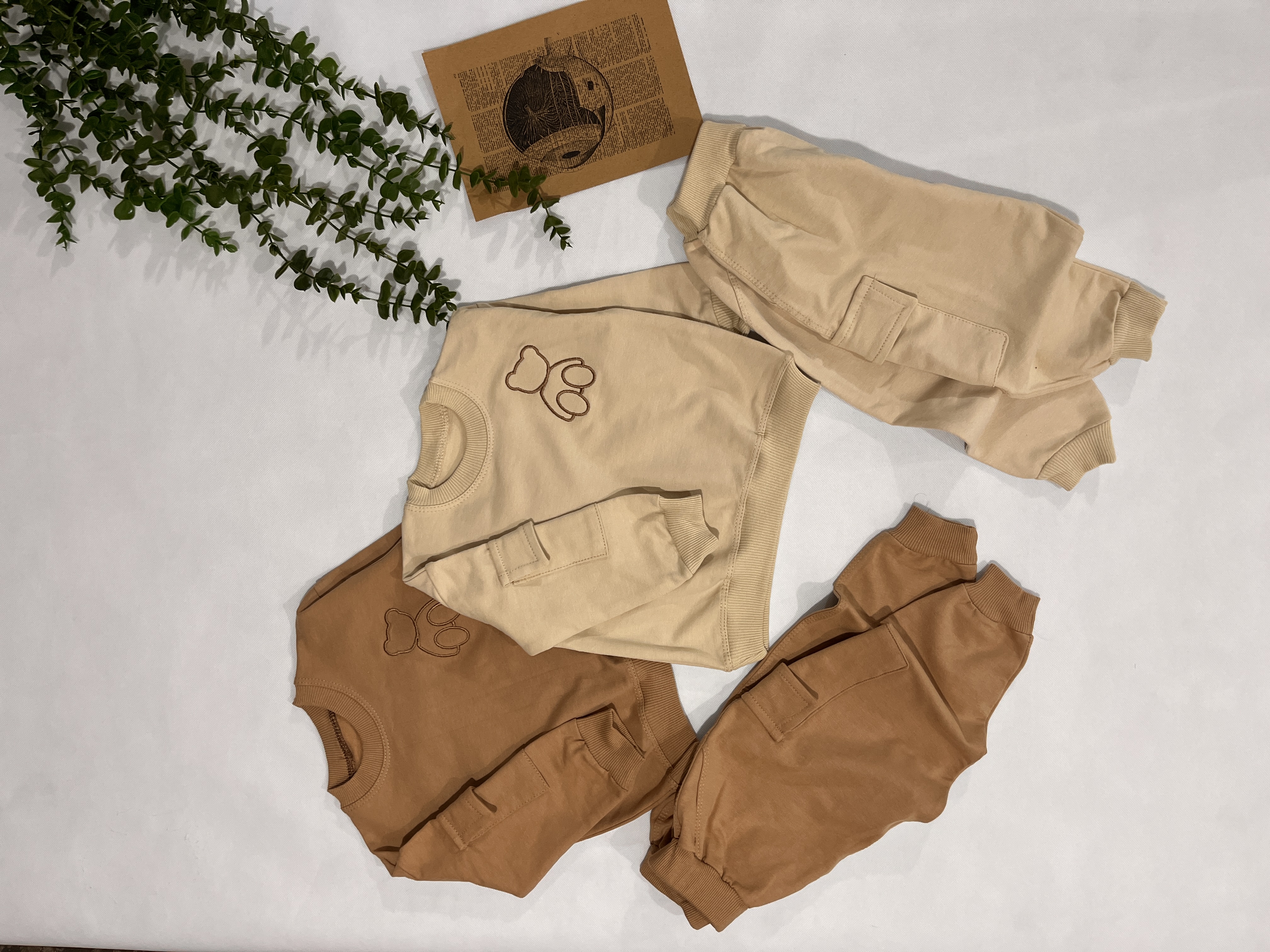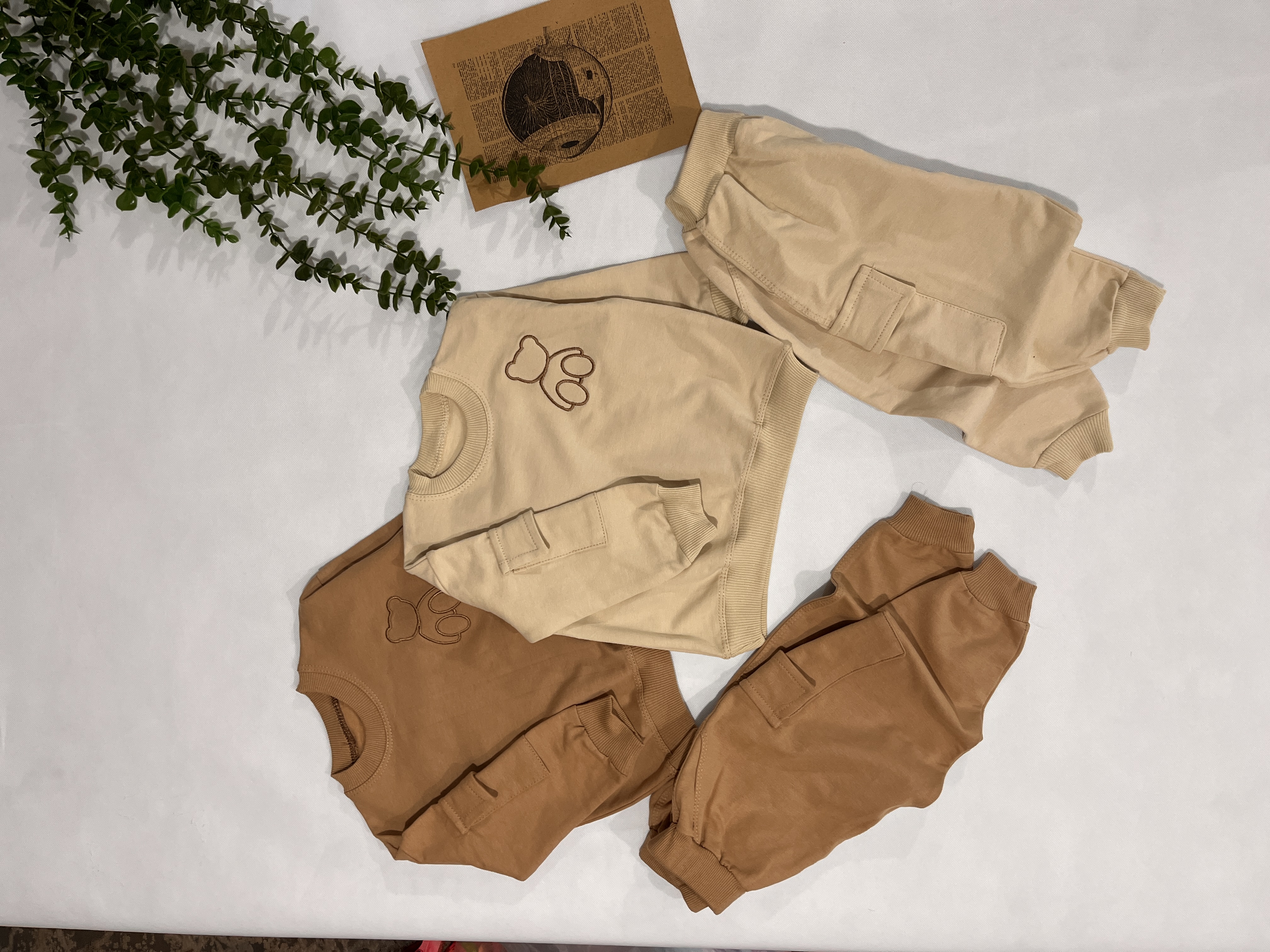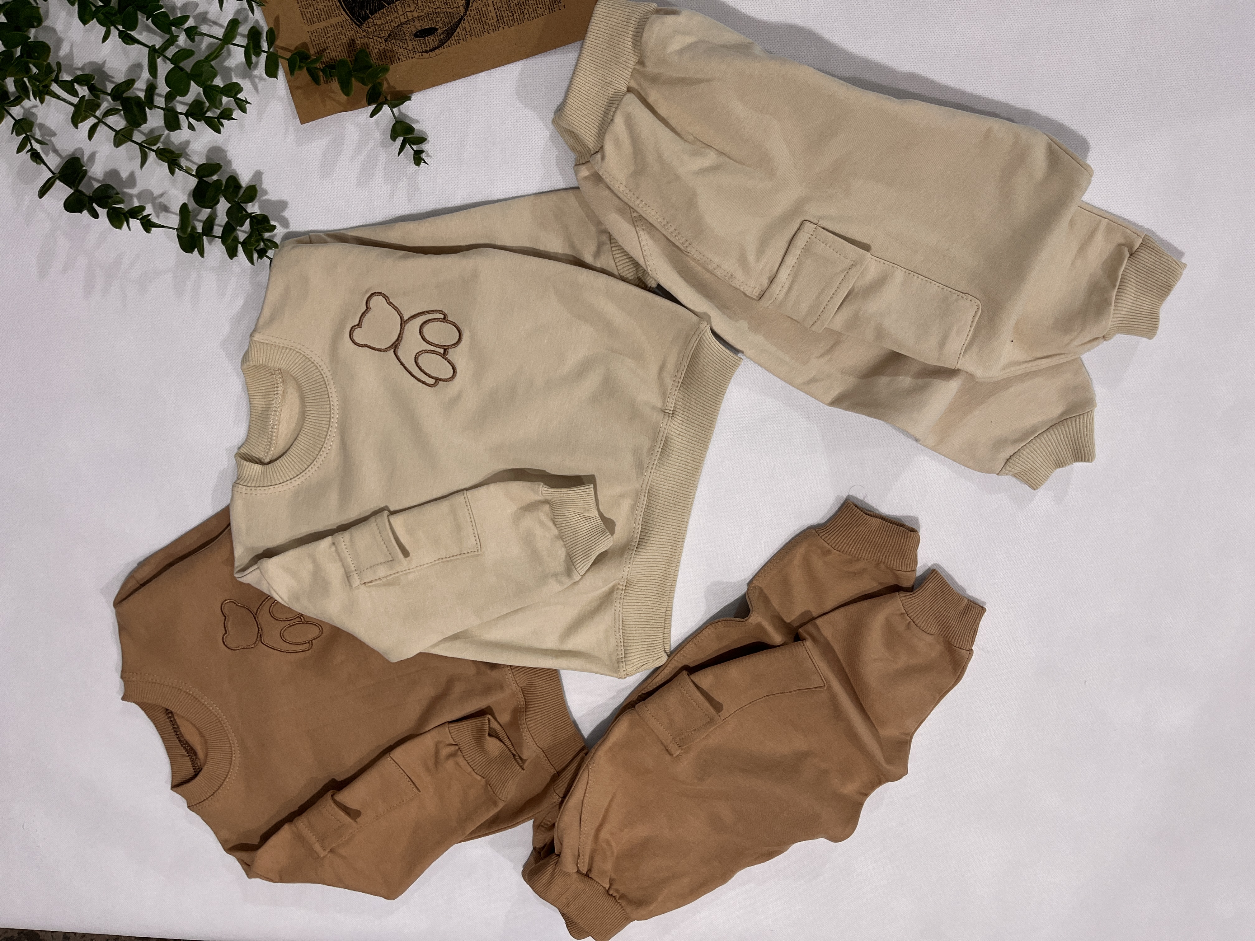 دو رنگ کرم و قهوه ای ، بسیار خوش دوخت و زیبا ، جنس دورس دونخ پنبه ،از شش ماه تا دوسال