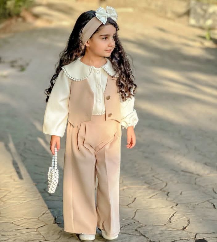 🧐🧐 ۳ تیکه شومیز و شلوار و جلیقه 💯💯جنس کار مازراتی درجه یک ، دو تا هشت سال، ارسال هفته اول آبان