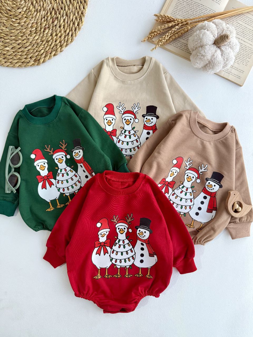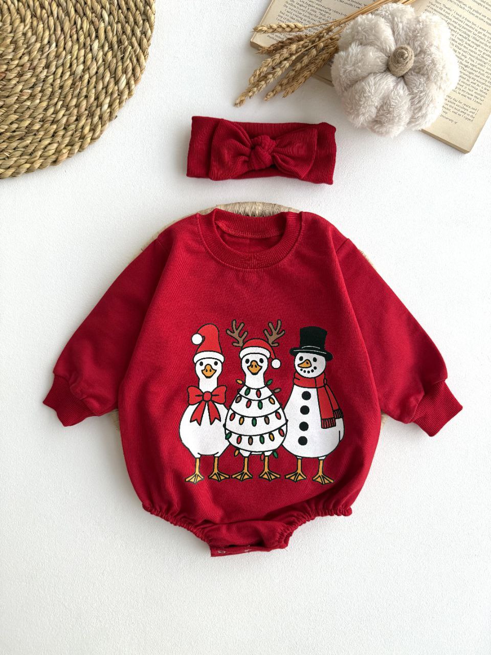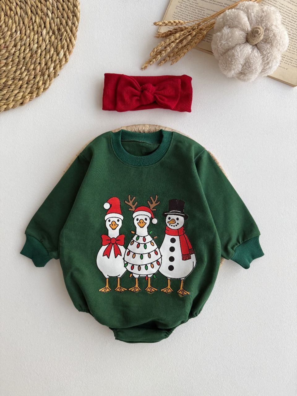 جنس دورس دونخ پنبه ، مناسب یلدا و کریسمس، از شش ماه تا دو سال، دو رنگ سبزو قرمز